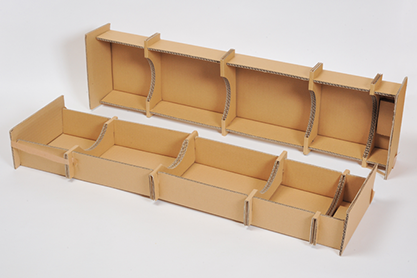 段ボール資材の柔軟性を活かした無駄の無い構造設計により、包装容積を大幅に削減しました。