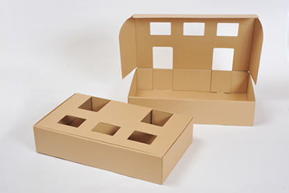 脱PSフォーム化の要望により考案・設計。型抜きによる組箱形式を基本に、作業コスト、輸送コストの削減を行うとともに、強度保持も実現させた。